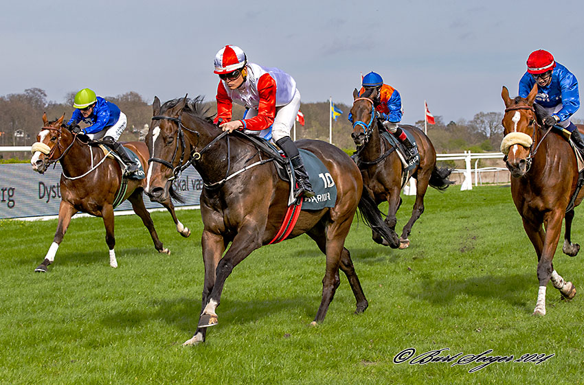 2-årig fuks hoppe v. Appel Au Maitre – Half Heaven / Academy Award. Har startet 4 gange placeret i lige så mange starter som 2-årig. Seneste start den 11. oktober på Klampenborg. Hcp.: 61.