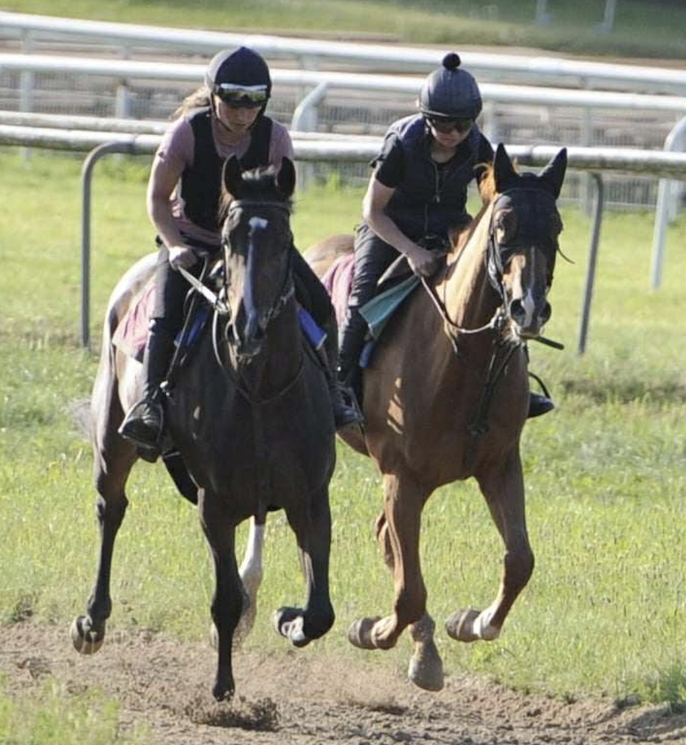 ”East Wind Racings Melania (Moohaajim) er halvsøster til Garlic (Outstrip). Hun skuffede i sin to starter som 2-årig, men hun træner godt”, understregede Kajsa.